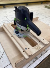 It is then screwed to the master template and a bearing guided router cutter used to trim the recess to the exact shape/size of the neck.