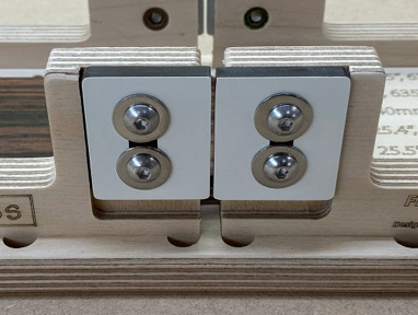 Whilst the use of plywood may alarm some makers I must point out that this an extremely stable and hardwearing material and each template hole is only used once for each fret board cut. I doubt that any noticeable wear would be detectable even after cutting more than fifty identical fretboards.